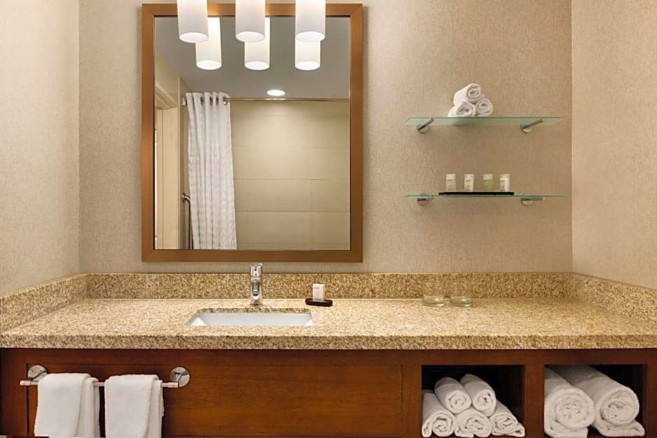 This suite includes a living room with a sofa bed, a flat-screen cable TV and a private bathroom. A microwave, a small refrigerator and a coffee machine are also available.